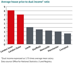 London-based office workers may command markedly higher salaries than their regional counterparts but, for the majority, this is more than offset by the eye-watering cost of housing, whether to purchase or rent.